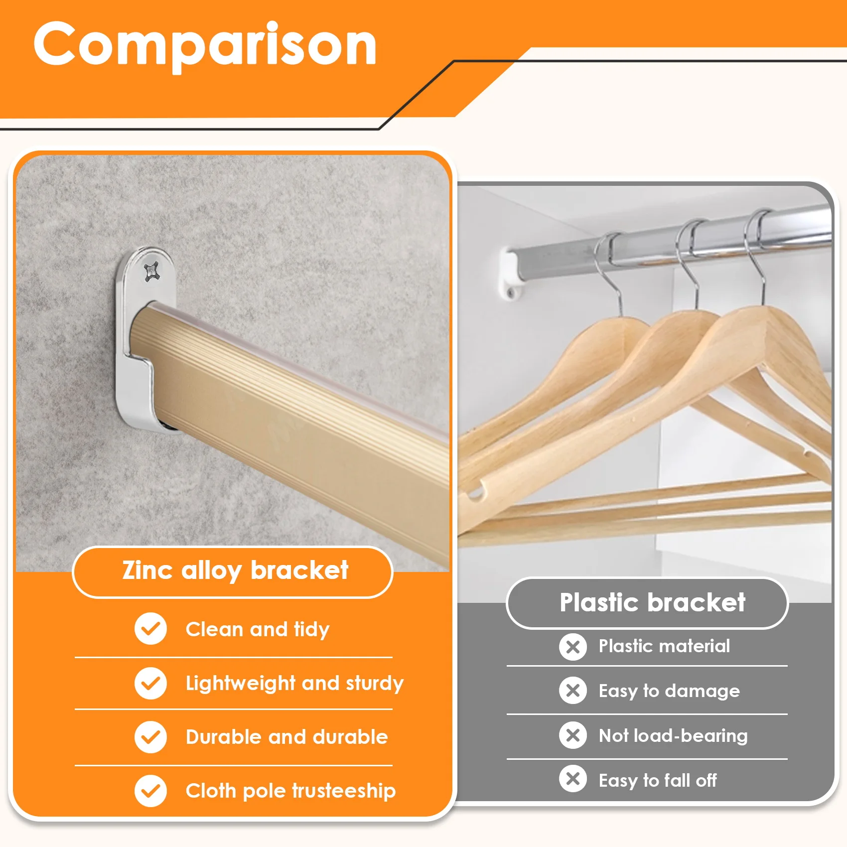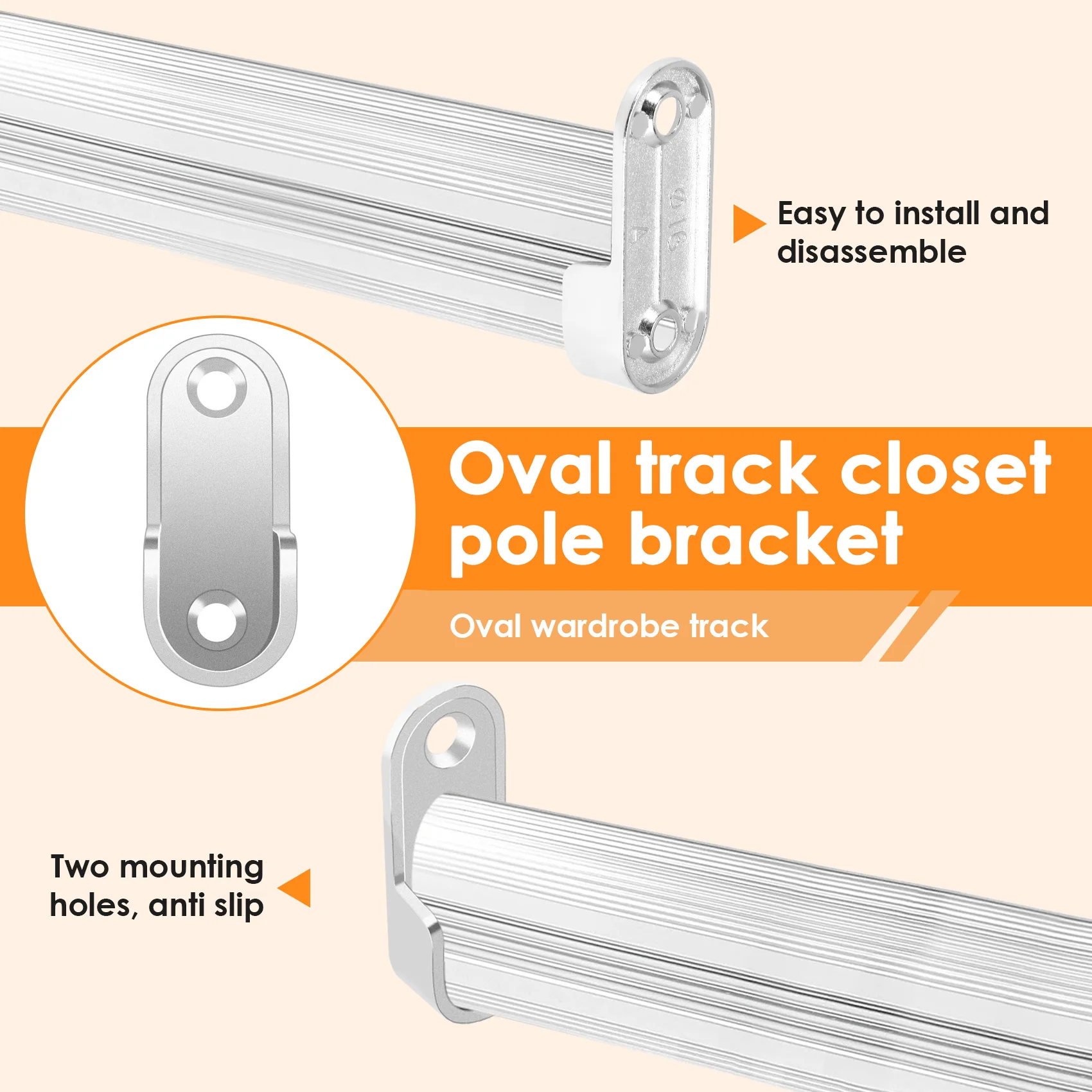 Овальный подвесной рельс для гардероба, наконечник стержня, опора, пара серебристого тона