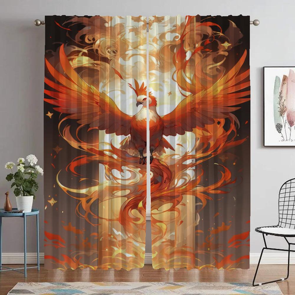 Огненный Феникс Оконные Шторы для Комнаты 2 Панельные Шторы для Спальни Украшения Хэллоуина Оттенки Разделительные Шторы Для Домашнего Интерьера W50xH70cmx2pcs-CL