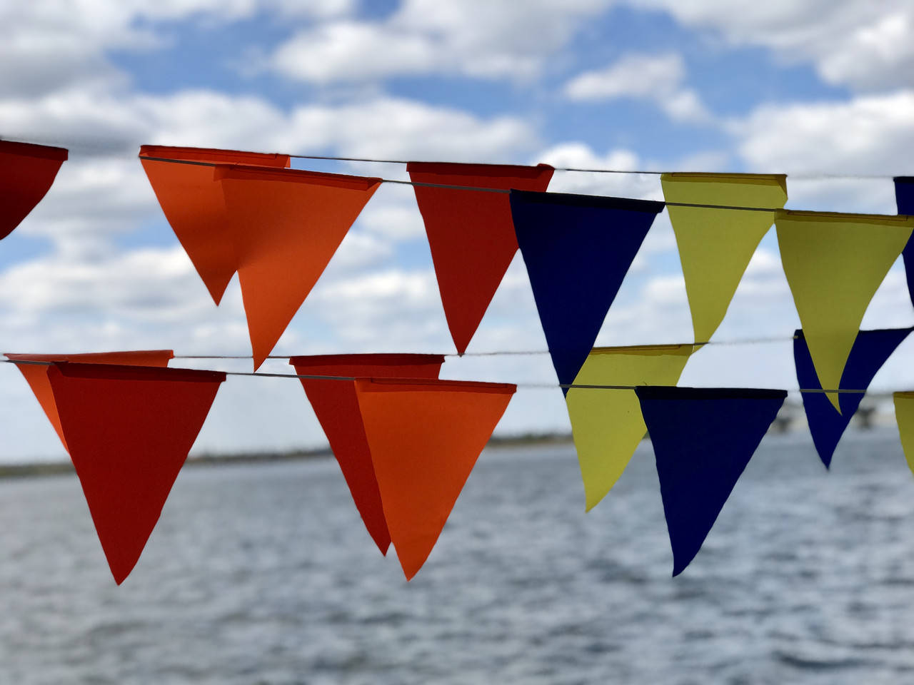 Флажки закреплены на качественном капроновом шнуре толщиной 3 мм.