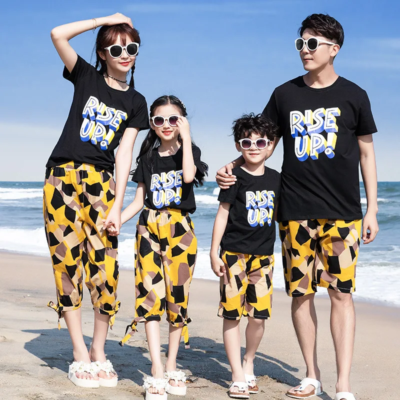 Одежда для всей семьи, летние хлопковые футболки и штаны для мамы, дочки, папы и мальчиков, 2 шт./компл., одежда для всей семьи, желтый цвет
