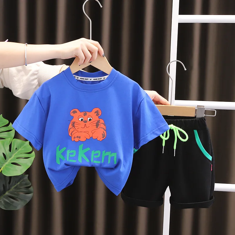 Одежда для маленьких мальчиков и девочек 2022, летняя повседневная одежда для младенцев из 2 предметов, мультяшная хлопковая футболка + шорты ...