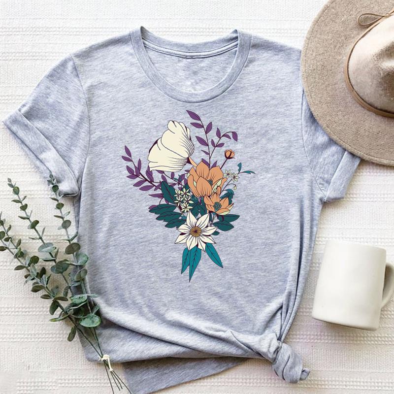 Одежда с акварельным цветком, повседневная футболка с коротким рукавом в стиле 90-х, милый стиль, женская футболка с принтом, модная футболка XXL