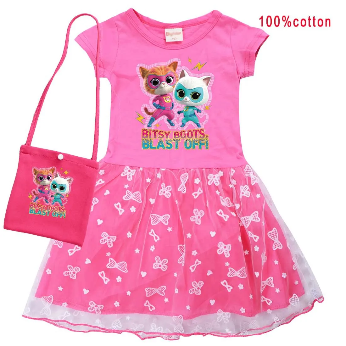 Одежда Superkitties, детское Повседневное платье с коротким рукавом, кружевное платье для маленьких девочек и с сумкой, детское свадебное платье