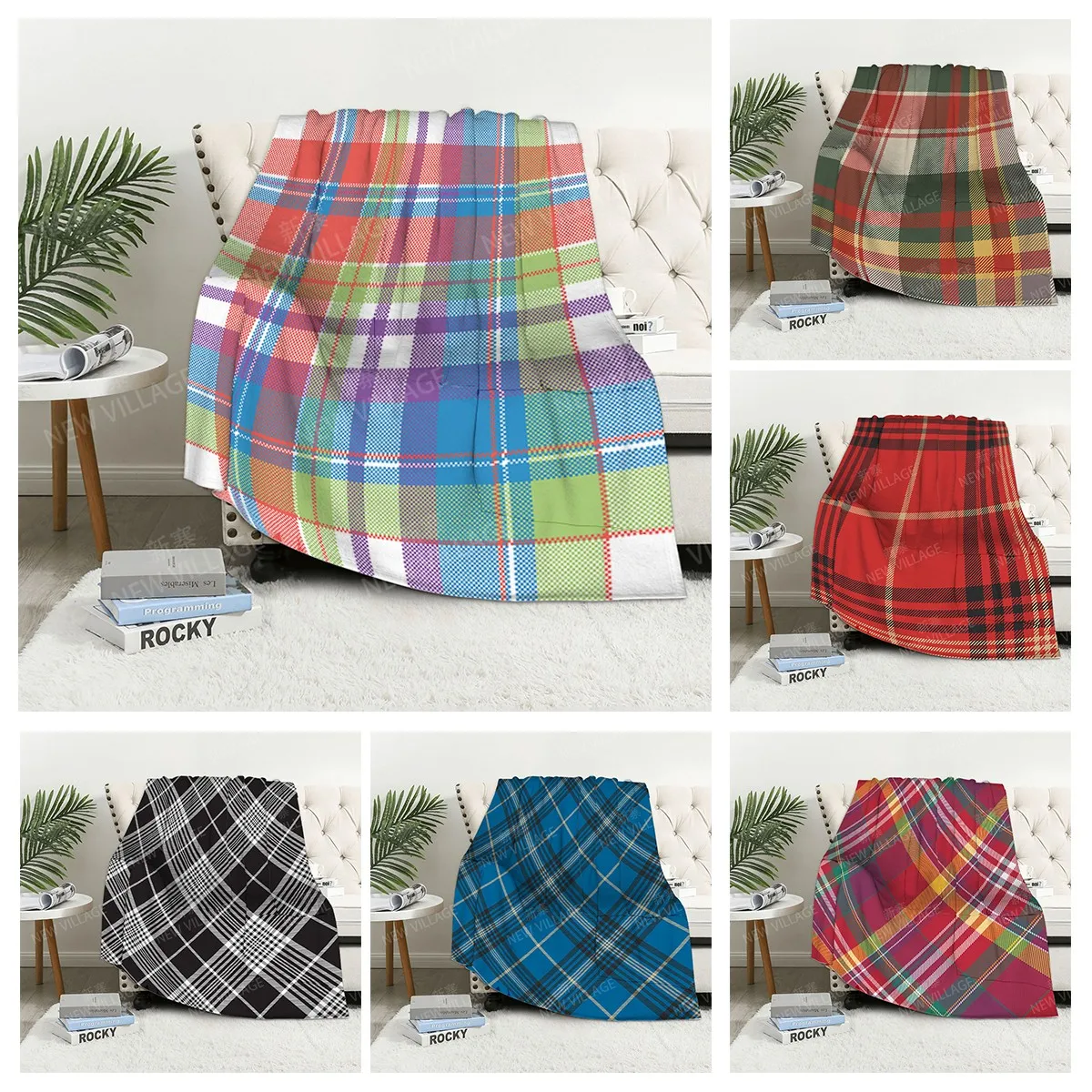 Одеяло до колена, теплый плед для дивана, зимнее покрывало, украшение, простые линии, в клетку, теплое одеяло с нордическими растениями, мягкое и пушистое