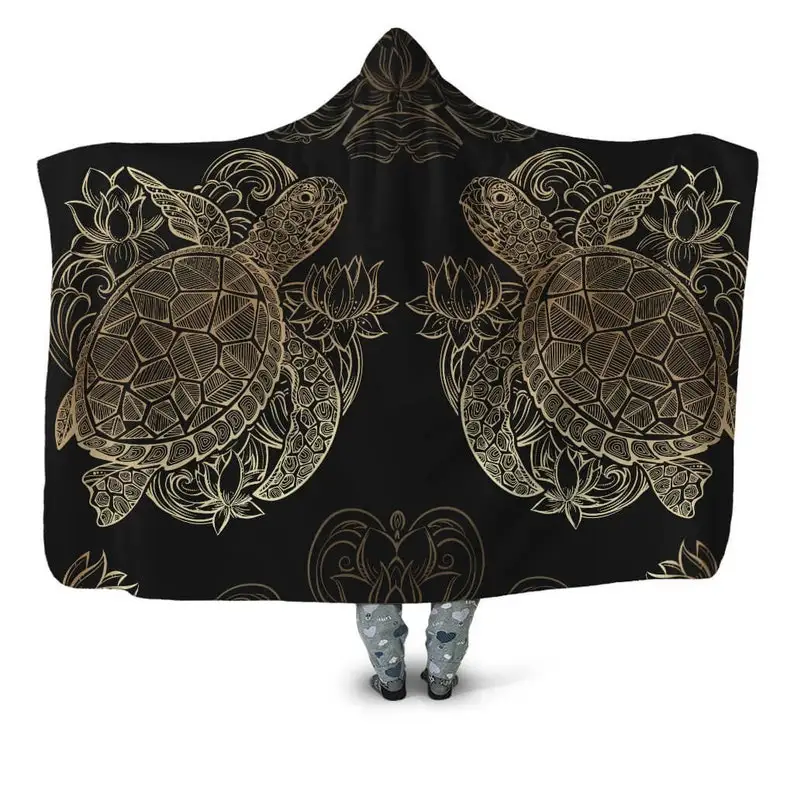 Одеяло с капюшоном для девочек-подростков, одеяло с капюшоном для любителей морской черепахи, золото, яркое покрывало для взрослых