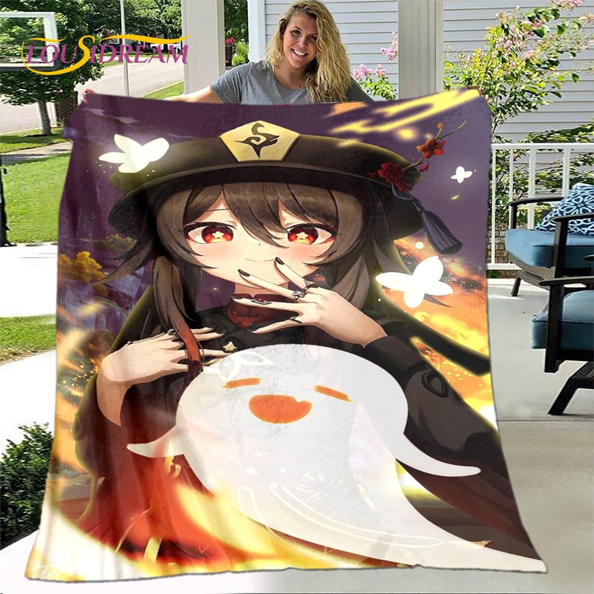 Одеяло с 3D мультфильмом Genshin Impact, фланелевое одеяло, мягкое теплое одеяло для гостиной, спальни, кровати, дивана, подарок 100x150cm