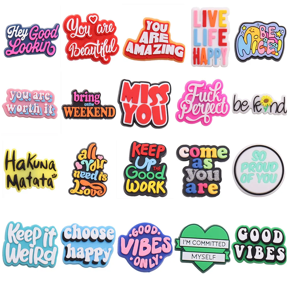 Одиночная распродажа, 1 шт., подвески для обуви из ПВХ, красочные английские лозунги, MISS YOU, аксессуары для тапочек, украшения для обуви для детей, подарок