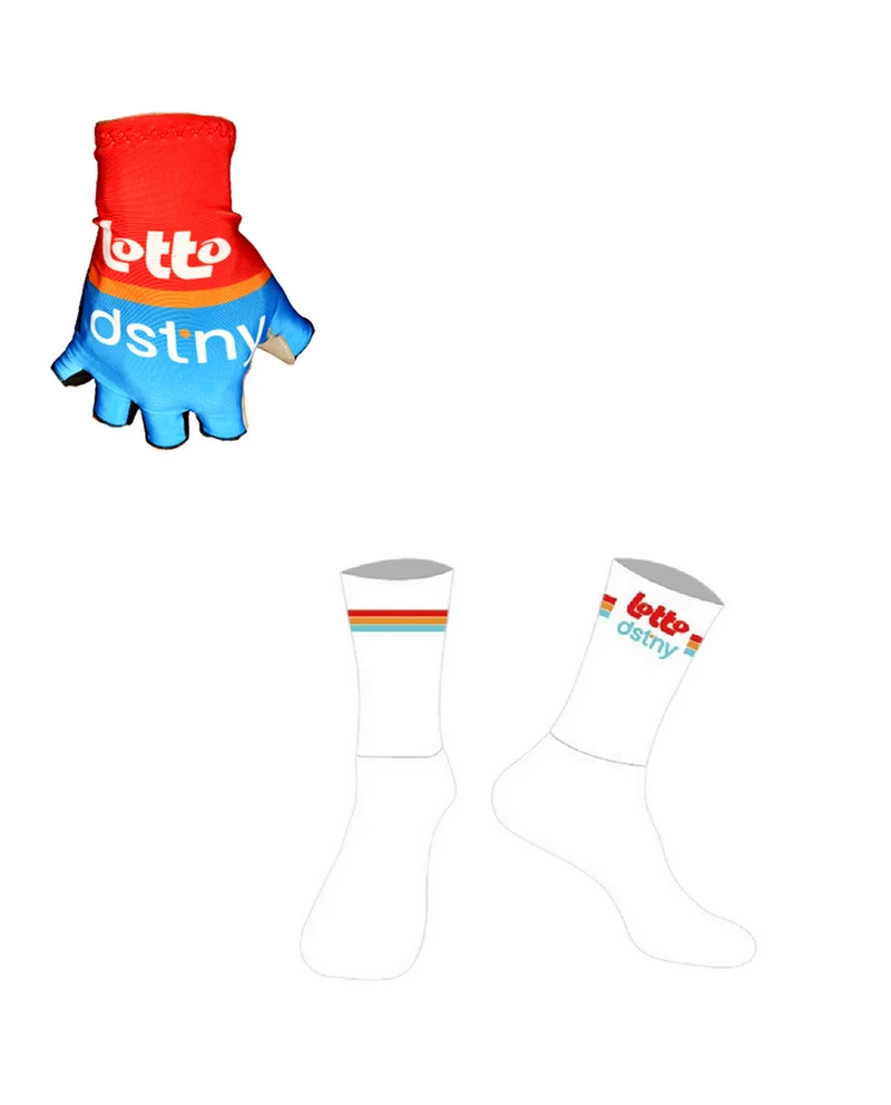 Одна пара велосипедных перчаток Lotto Dstny Team 2024, одна пара велосипедных носков с половиной пальца + ОДИН ПАРА ВЕЛОСИПЕДНЫХ НОСКИ
