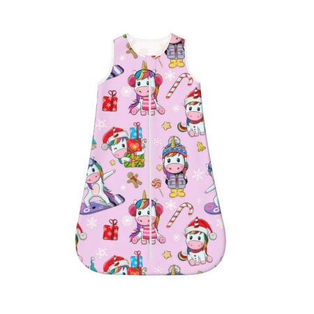 Fotbe Christmas Unicorns Pattern Sleep Sack - Baby Wearable Blanket with Zipper Extra Soft Cotton Sleeveless Sleeping Bag for Infants-X-Large