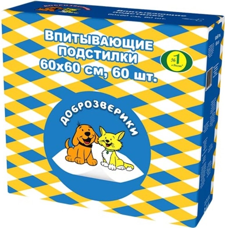 Одноразовая пеленка Доброзверики Classic впитывающие с рисунком 60x60 (30 шт)