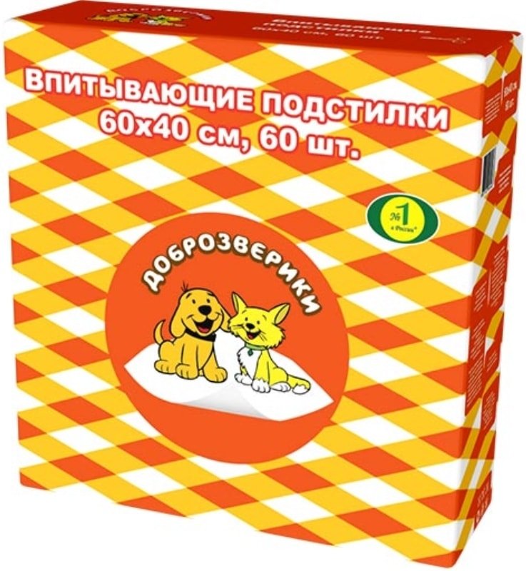 Одноразовая пеленка Доброзверики Classic впитывающие 60x40 (60 шт)
