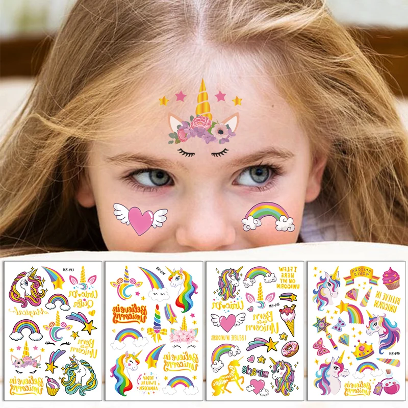 Одноразовая тату-наклейка для детей, Русалка, единорог, динозавр, одноразовая тату-наклейка, детское украшение на день рождения, для мальчик...