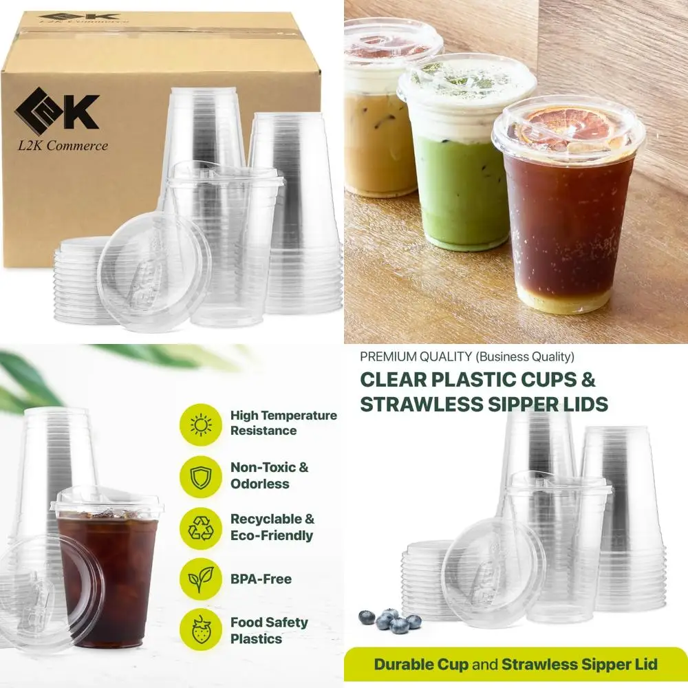Одноразовые прозрачные пластиковые кофейные чашки на 16 унций с крышками, набор из 200 штук, идеально подходят для кофе со льдом и напитков
