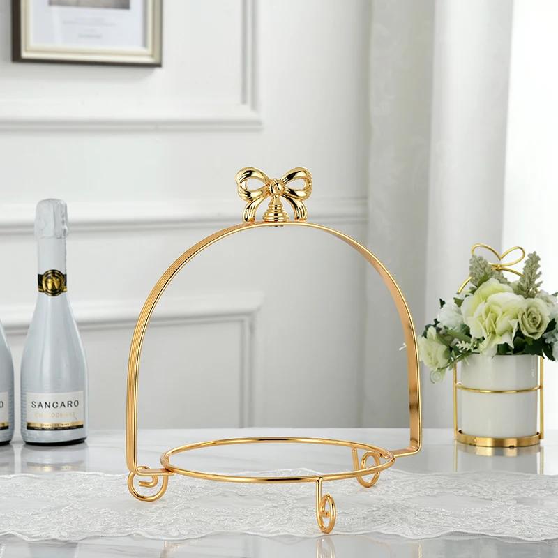 Однослойная двухслойная трехслойная металлическая подставка для торта с бантом, золотая серебряная круглая жемчужная форма для десертного торта, поднос для фруктов, подставка для демонстрации