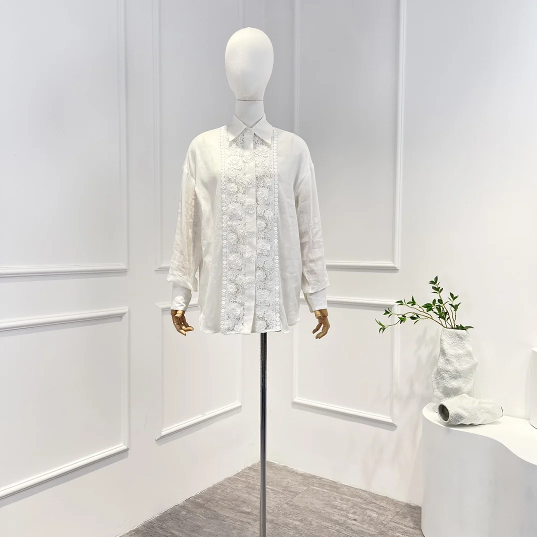 Однотонная бежевая Свободная Женская блузка с длинным рукавом, подходящая ко всему, 2023