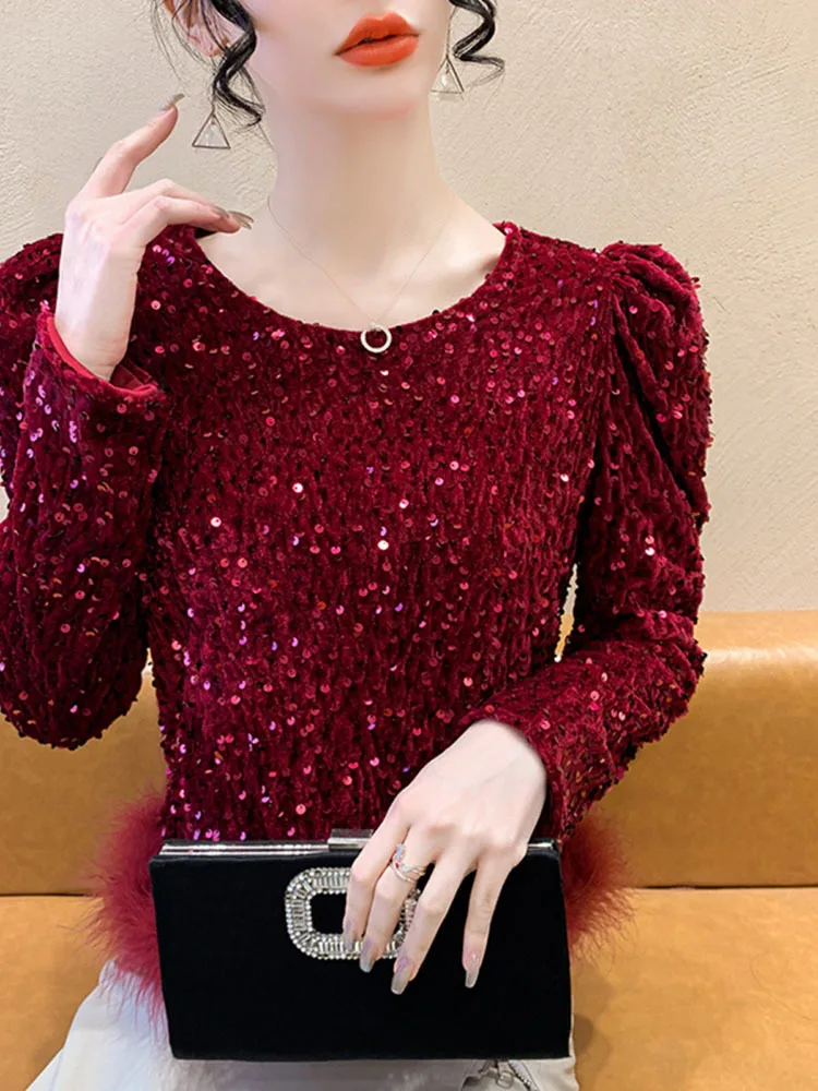 Однотонная женская футболка с блестками, однотонная женская футболка в стиле пэчворк, элегантные блестящие милые Рубашки, Топы 2024