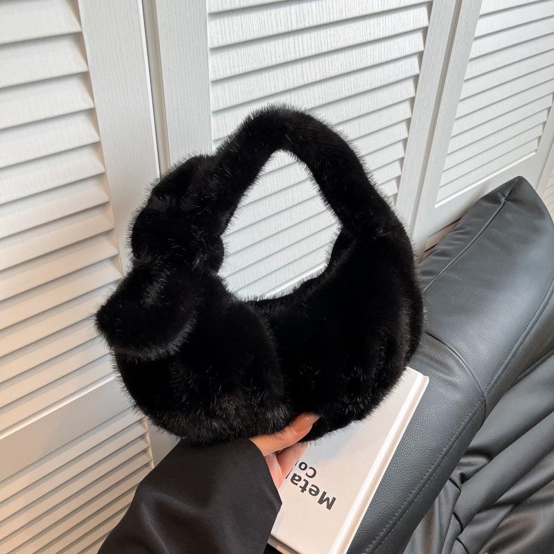 Однотонная плиссированная портативная сумка-облако модная 2025 новая плюшевая сумка женская высокоценная маленькая сумка уличный тренд чёрный