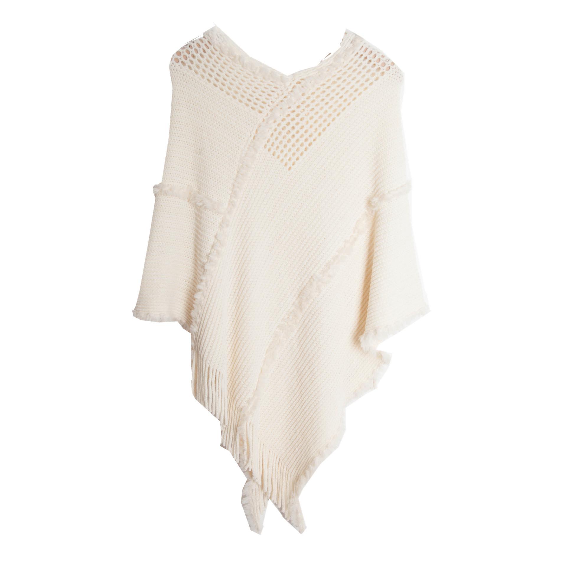 Однотонная полая вязаная шаль «летучая мышь» M