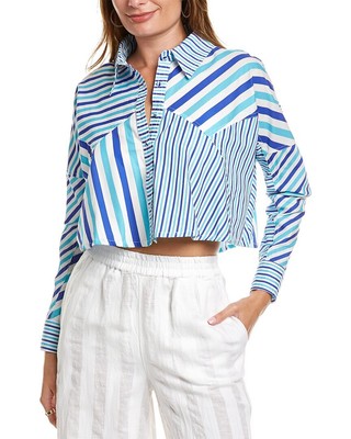 Однотонная и полосатая женская рубашка The Emerson, синяя, Синий