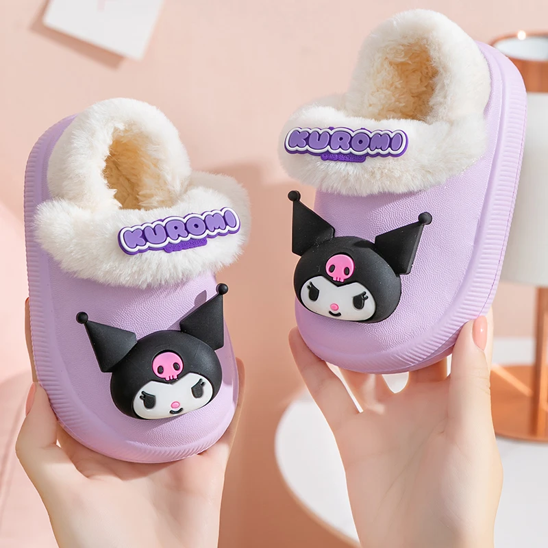 Sanrio Kawaii детские зимние хлопковые тапочки на каблуке, детские домашние тапочки с рисунком аниме Kuromi, подарок для девочки