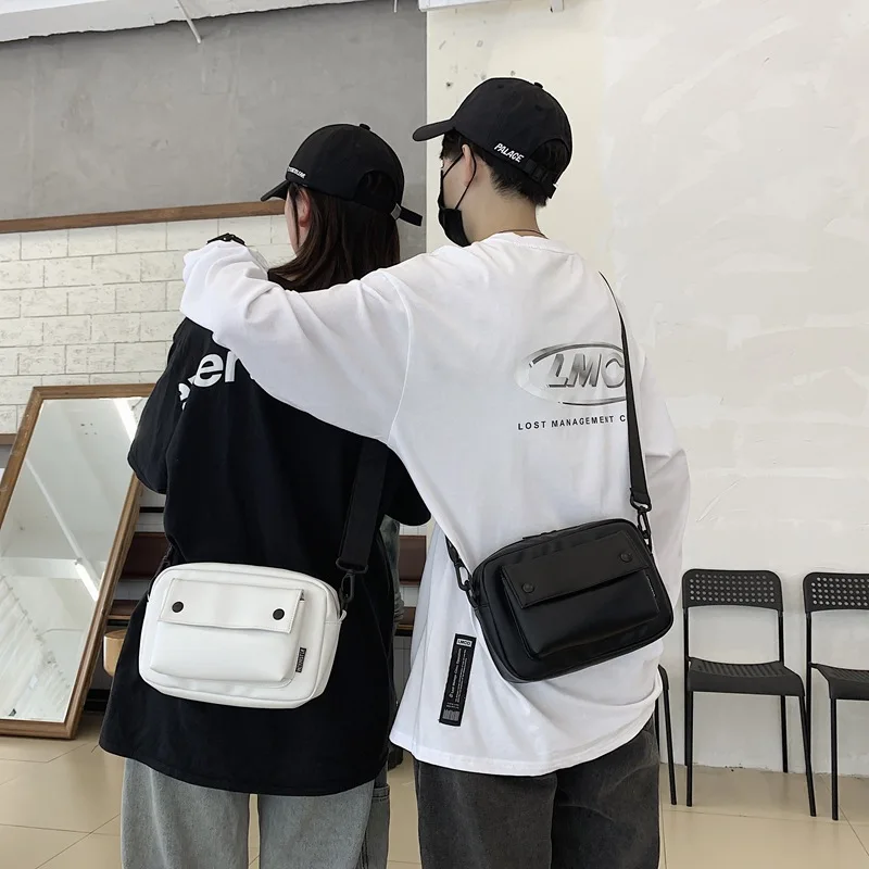 Однотонная сумка-мессенджер из ПУ кожи, повседневная сумка-тоут, уличная сумка на молнии, сумка через плечо в стиле хип-хоп для мужчин и женщ...
