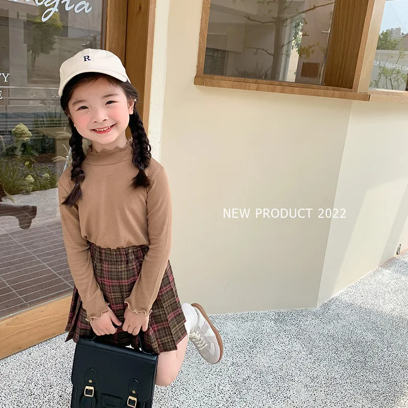 Однотонная трикотажная Базовая футболка с длинным рукавом для девочек 1-8 лет