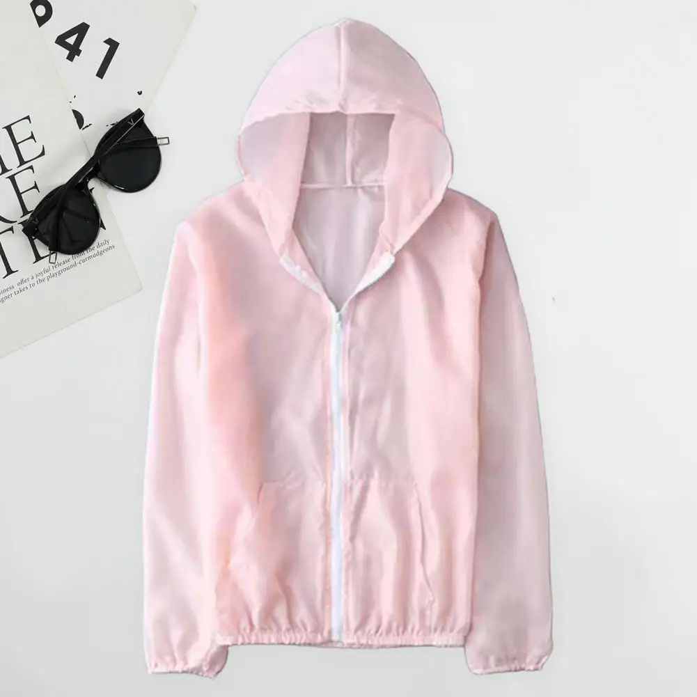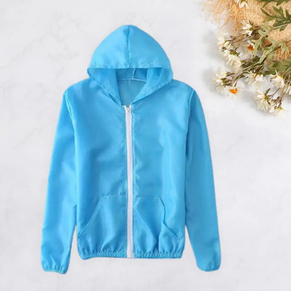 Однотонная ультратонкая Солнцезащитная верхняя одежда унисекс с капюшоном и карманами на молнии