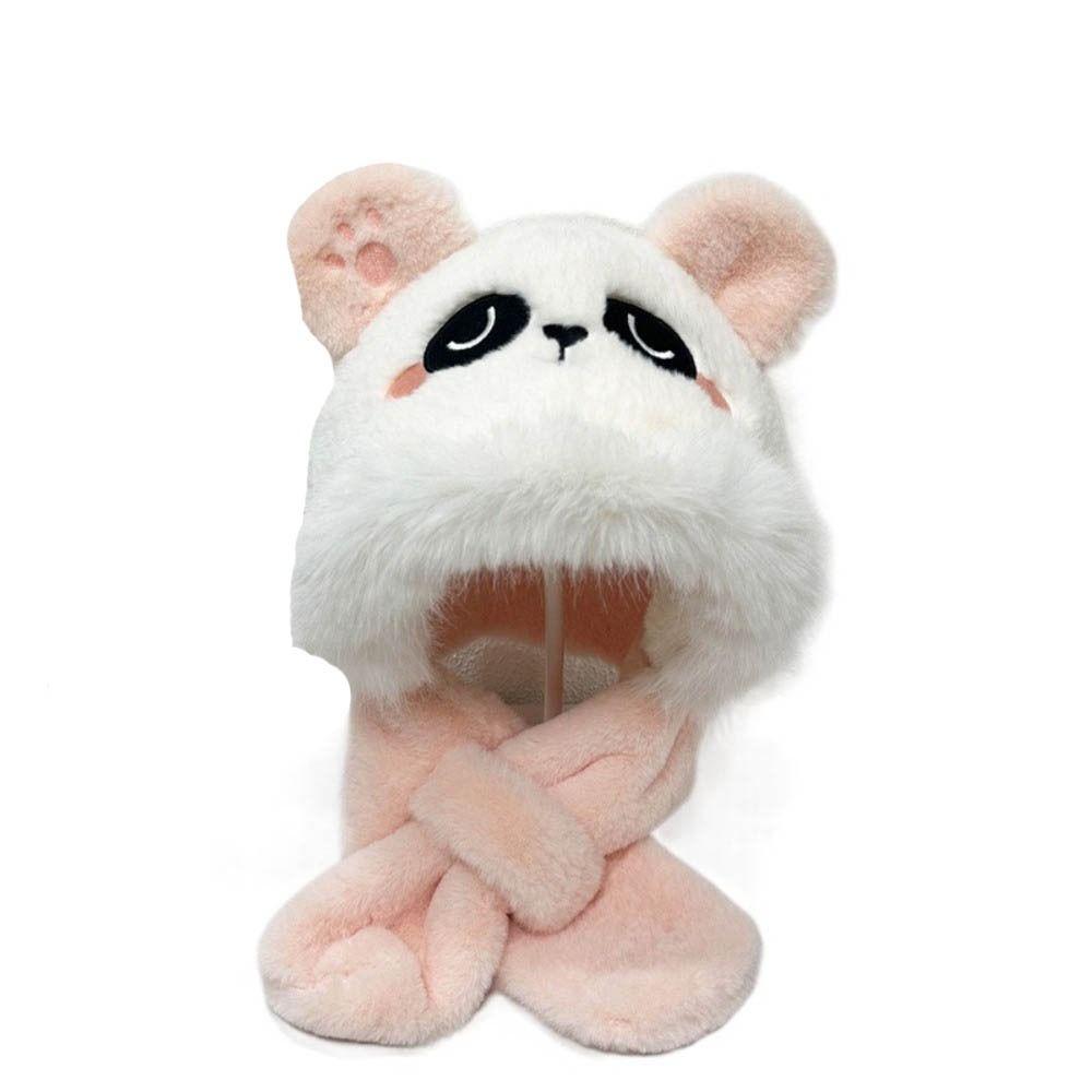 Однотонная шапка-панда, большой обхват головы, зимняя шапка, модный шарф, шапка с интегрированным волосом розовый