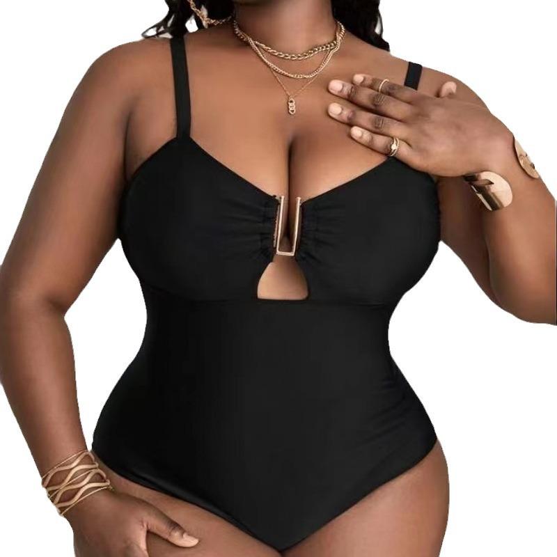 Однотонное бикини с глубоким V-образным вырезом, сексуальный купальник большого размера с вырезами для женщин 4XL чёрный