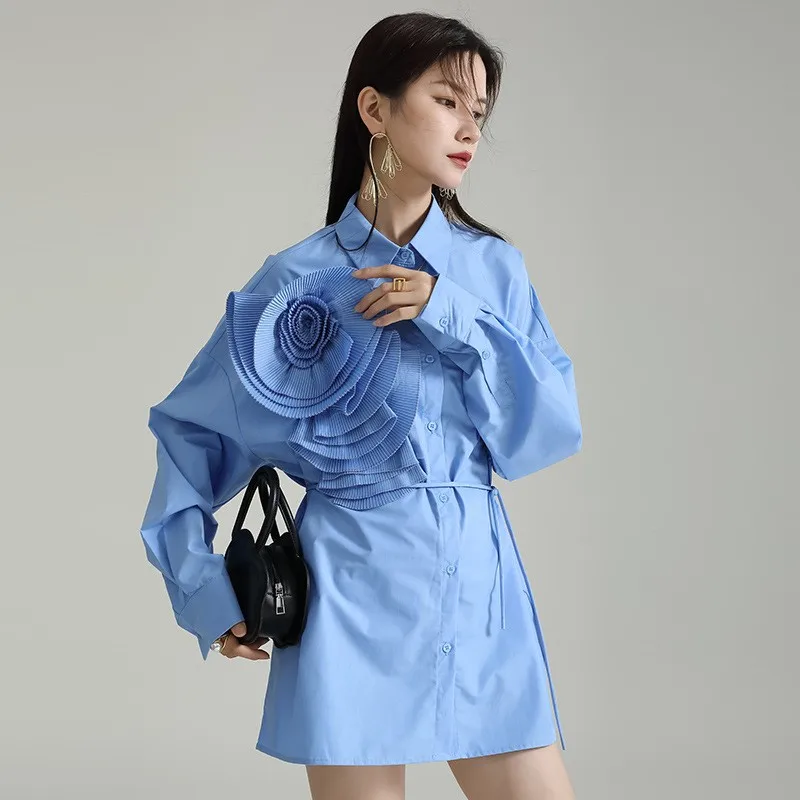 Однотонное женское платье с объемными цветами, винтажные корейские модные женские топы, элегантные милые женские платья 2024