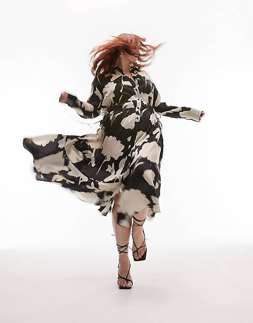 Однотонное платье-рубашка макси с принтом на талии Topshop Curve