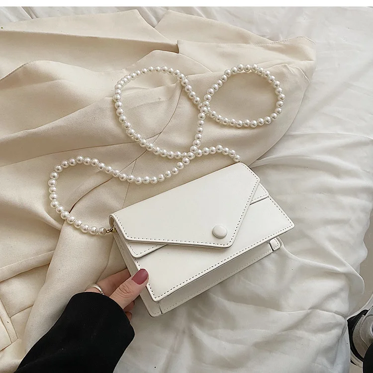 Однотонные дамские сумочки на плечо с откидной крышкой и жемчужными цепочками, женские сумочки, роскошный треугольный чехол, весенние и лет...