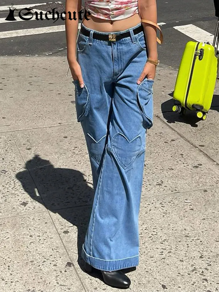 Однотонные женские джинсы в Корейском стиле с широкими штанинами, 2023