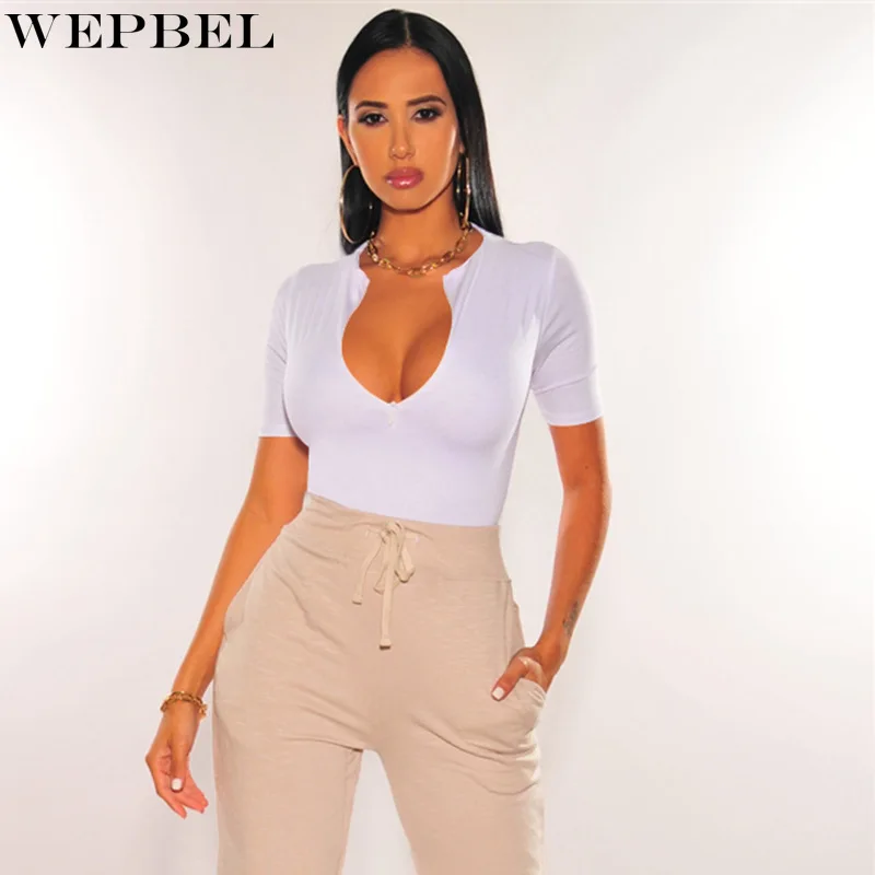 Однотонные облегающие боди WEPBEL, женские сексуальные боди, летние модные боди с высокой талией, V-образным вырезом и коротким рукавом