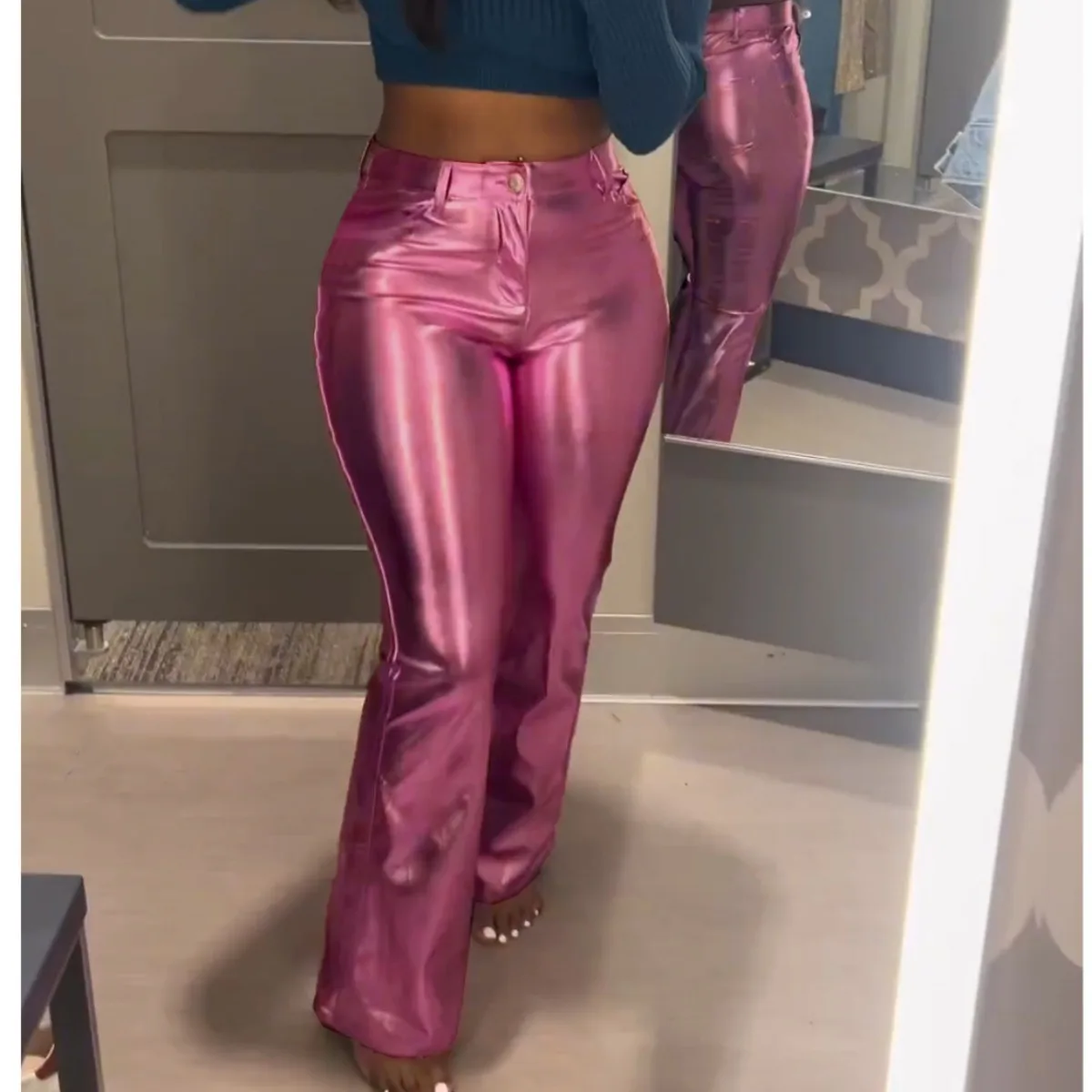 Однотонные пикантные облегающие брюки-клеш с блестками, женские офисные брюки для женщин