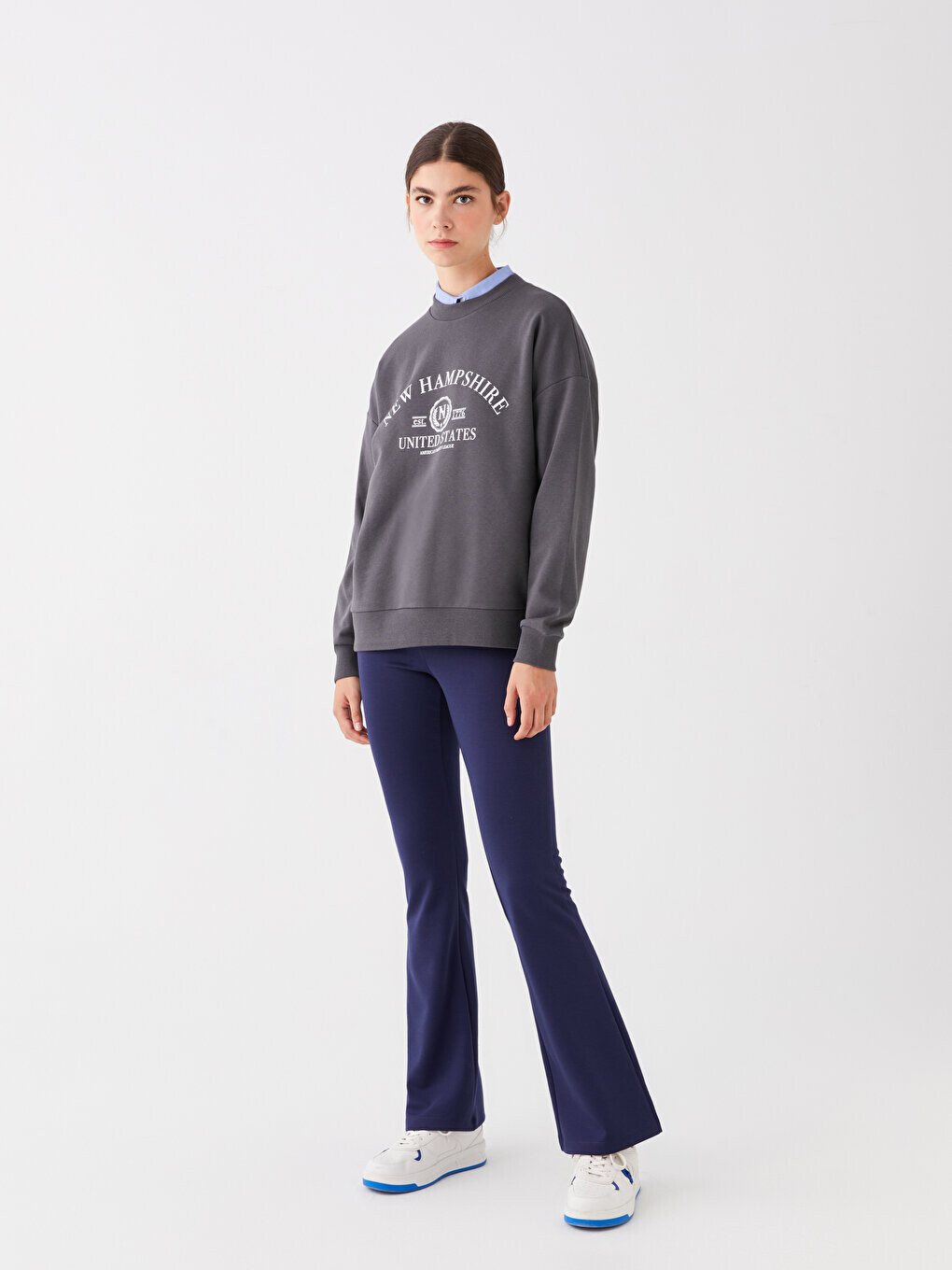 Однотонные расклешенные женские спортивные штаны с эластичным поясом LCW Casual, темно-синий