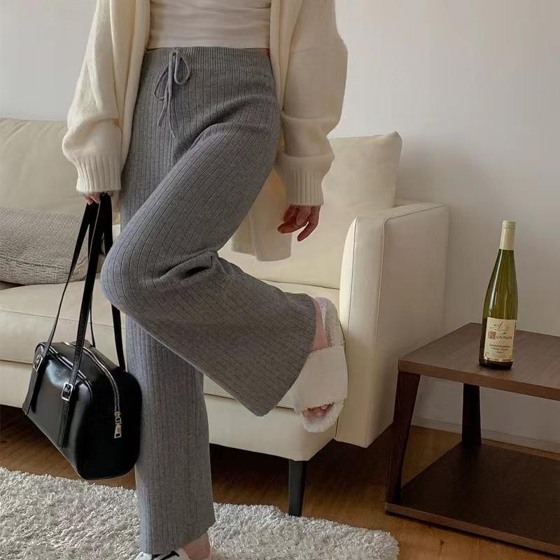 Однотонные трикотажные брюки с высокой талией, широкие брюки для осени и зимы, мягкие прямые брюки в стиле ленивых, повседневные брюки до пола, женские брюки One Size серый