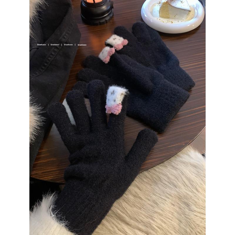 Однотонные шерстяные вязаные перчатки для женщин на зиму с раздельными пальцами, чтобы сохранять тепло и защищать от холода для езды на велосипеде на открытом воздухе, для студентов с сенсорным экраном one size