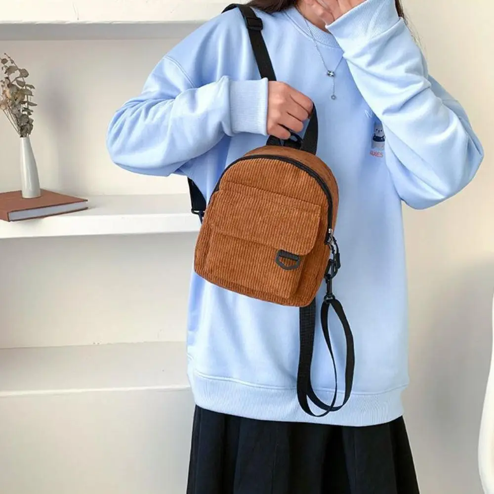 Однотонный маленький бархатный рюкзак в полоску, сумка на плечо в офисном стиле на молнии, вместительная маленькая школьная дорожная сумка для покупок