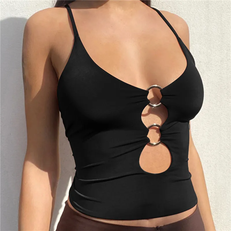 Однотонный топ на бретельках без рукавов, женский сексуальный укороченный топ с открытой спиной, модные повседневные Простые тройники 2022