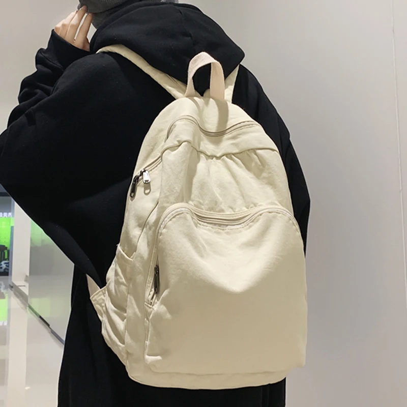 Однотонный холщовый женский рюкзак, милая дорожная сумка, школьный ранец для девочек-подростков, дамская сумка для книг