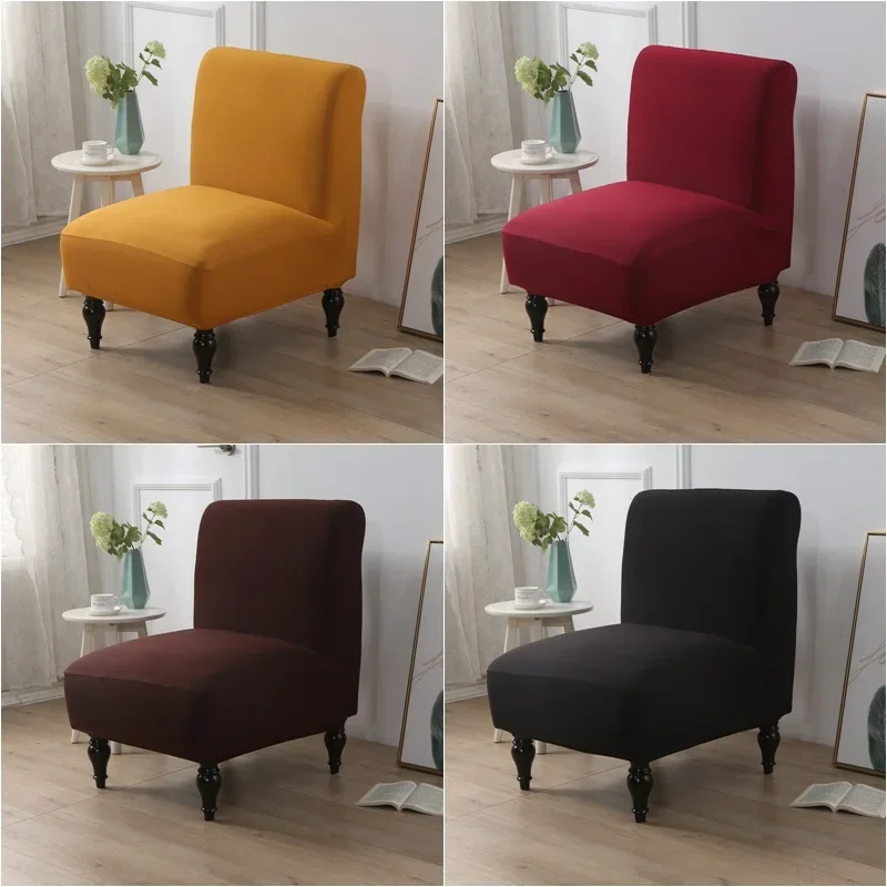 Solid Color Spandex Accent Armless Chair Cover Single Sofa Slipcovers Nordic Stretch Chairs Covers Elastic Couch Protector Cover