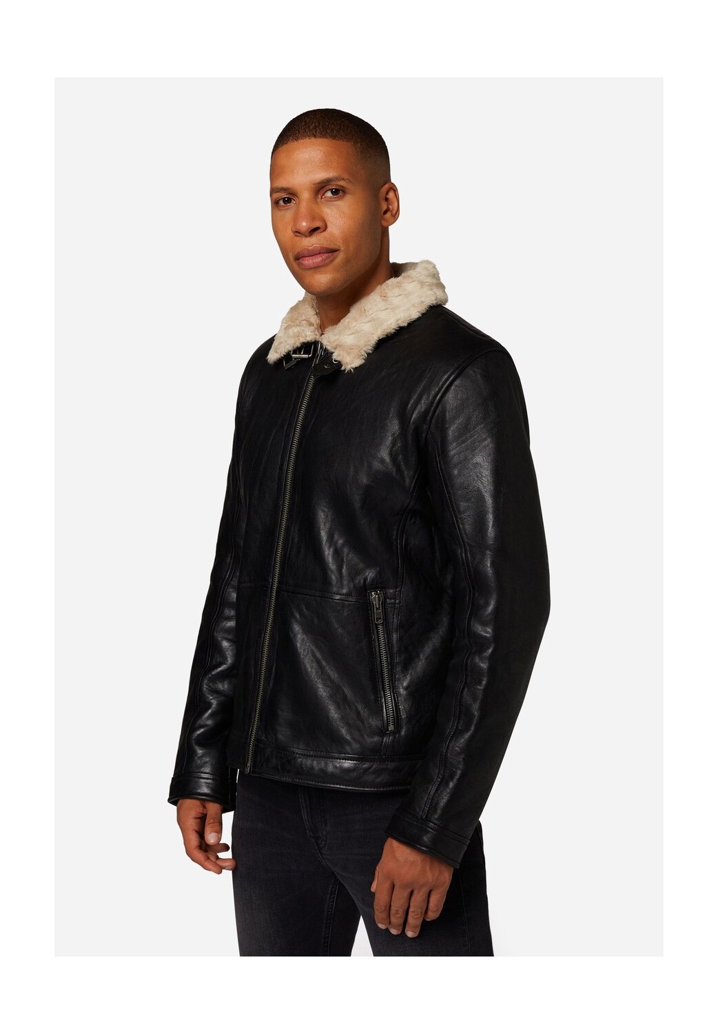Мужская кожаная куртка Артур - меховой воротник и подкладка из искусственного меха RICANO, черный
