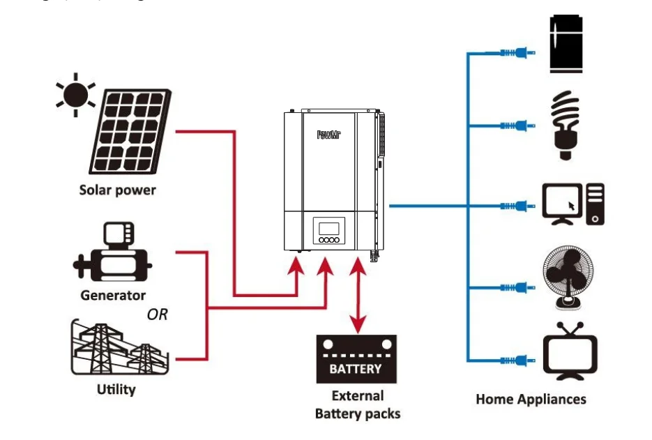 Однофазный Гибридный Инвертор солнечной энергии PowMr, 6200 Вт, 48 В, 220 В, а, Контроллер Заряда MPPT, 6 кВт