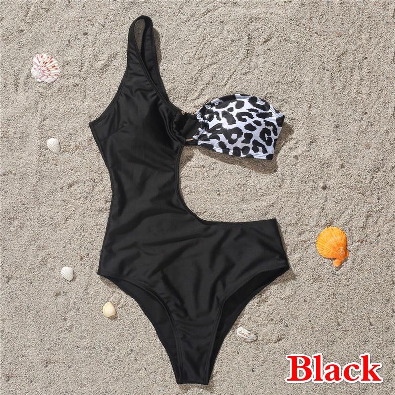 Одно плечо цельный купальник бикини с вырезом лоскутное купальный костюм женский купальный костюм с кольцом L чёрный