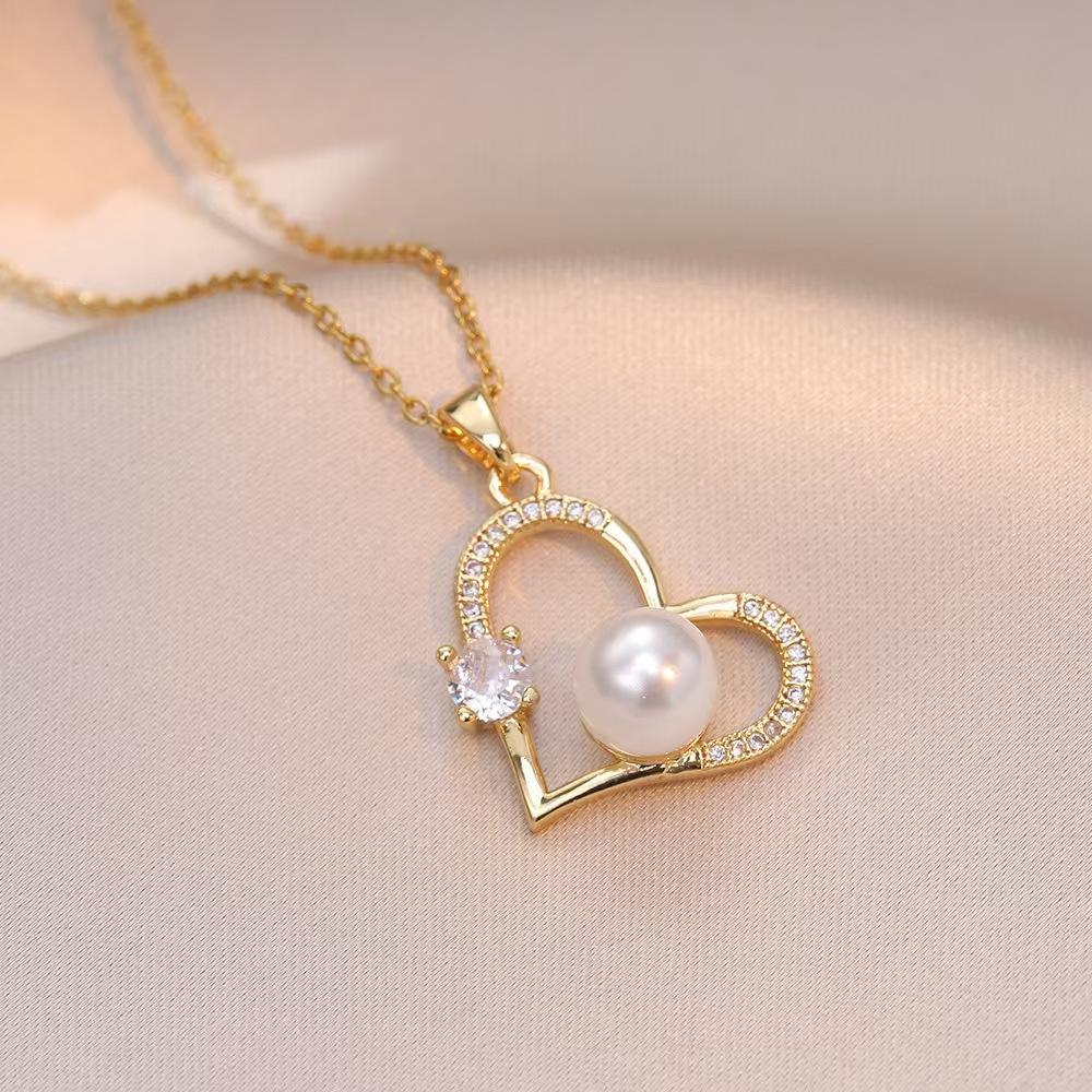 Ожерелье Любви Женское Простое Универсальное Темперамент Циркон Жемчуг Сердце Подвеска Ключичная Цепочка