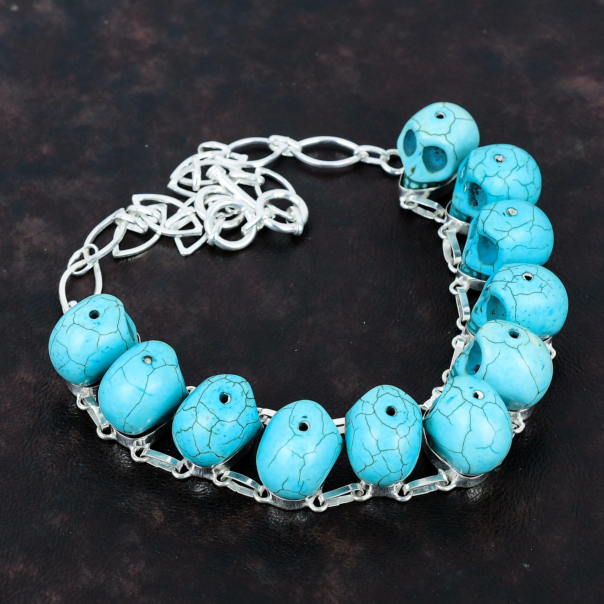 Ожерелье Санта-Роза с бирюзой и черепом, кость для лица, ожерелье из стерлингового серебра 925 пробы, регулируемая цепочка, ожерелье, драгоценный камень, ювелирные изделия ручной работы, подарки для нее Adjustable