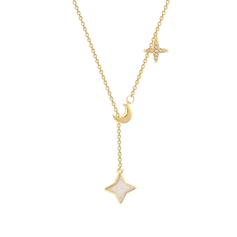 Ожерелье женское из титановой стали, модное колье в стиле ретро с четырьмя звездами, простыми кисточками, цепочка до ключиц, ожерелье со зве...