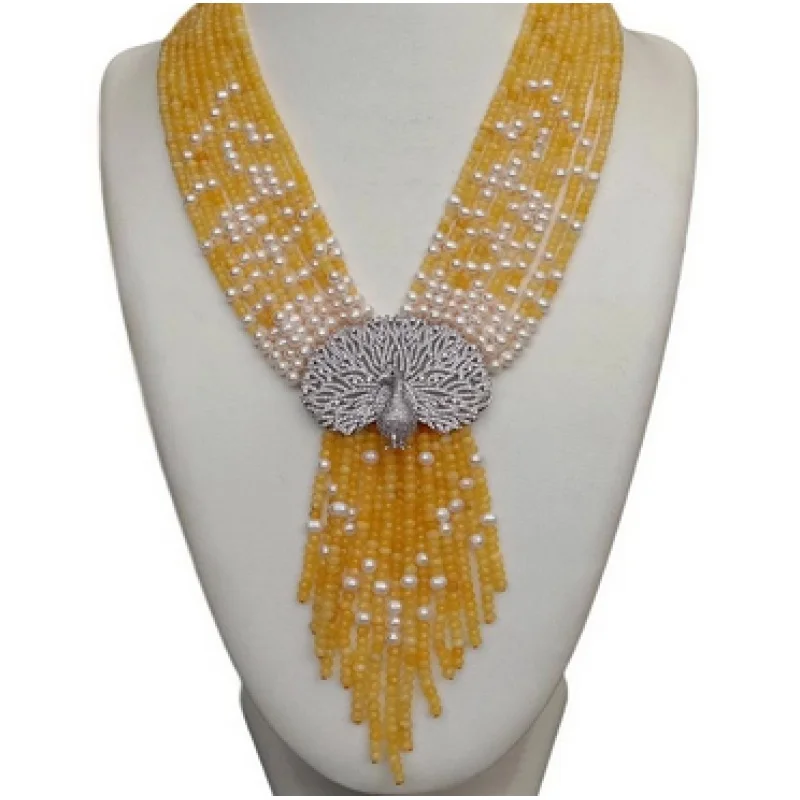 Ожерелье из белого пресноводного жемчуга, с подвеской в виде павлина 17-19,5 дюймов, 9 нитей, 2x4 мм