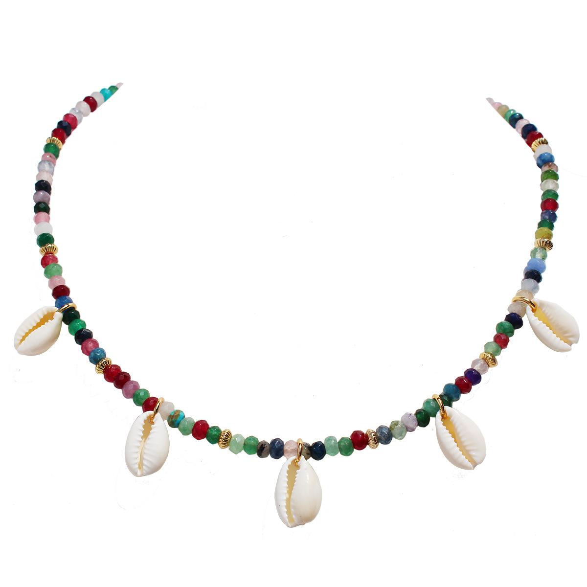 Ожерелье из бисера с ракушками цвета допамина и камнями «Ниш» для отпуска «Ветер» с натуральной ракушкой на ключицу 640